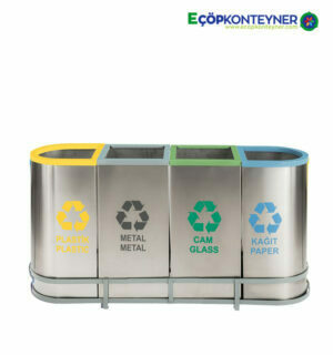 4’lü Paslanmaz Sıfır Atık Geri Dönüşüm Kutusu