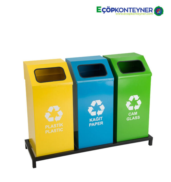 Etiketler: 3 lü boyalı sıfır atık geri dönüşüm kutusu, kare 3 bölmeli atık kutusu, üçlü boyalı atık kutusu, üçlü kare sıfır atık kutusu
